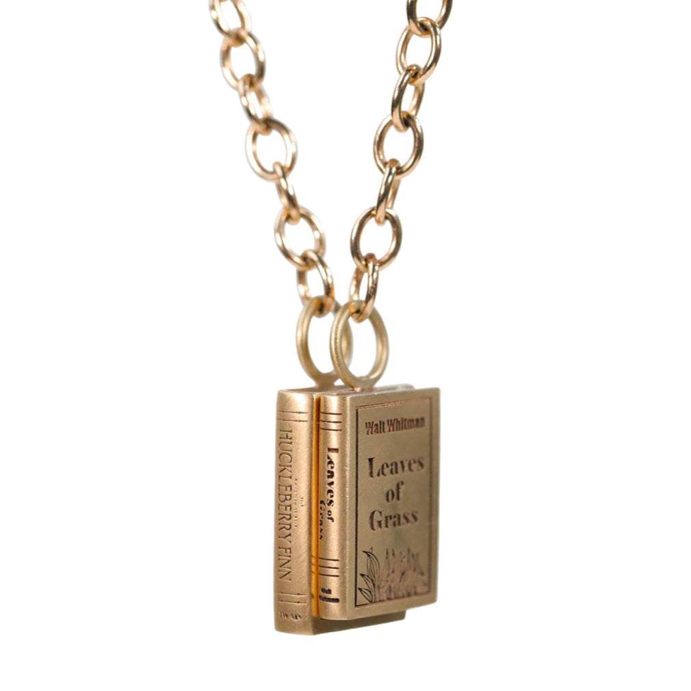Each chain will include one small book (300 page) and one large book (700 page) that are each magnetic and act as the chains closure. Sterling Silver pages with 14K Gold Covers.